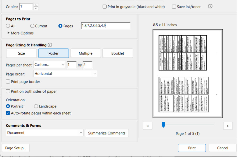 (Booklet Print Settings at the Right Column)