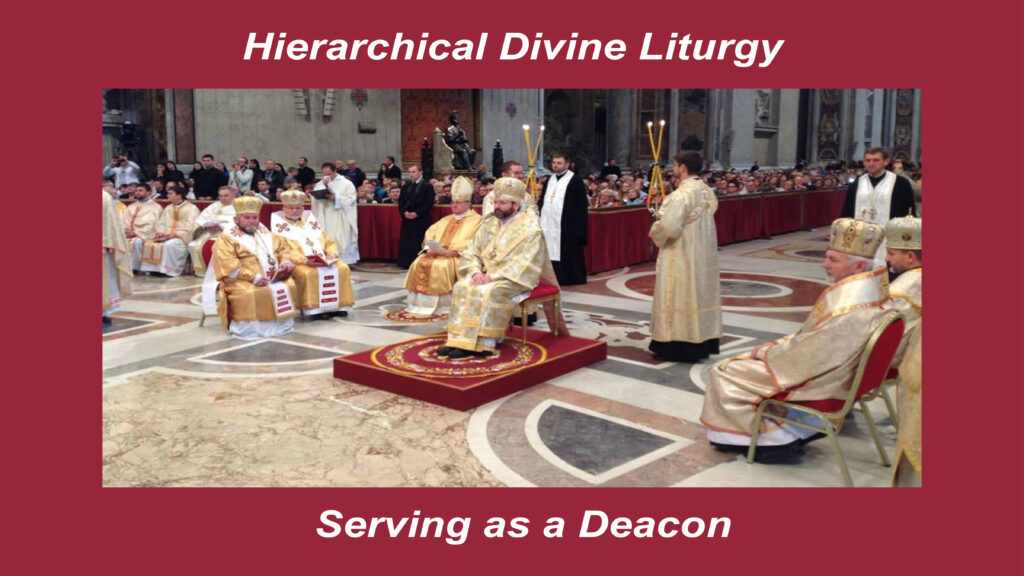 Note: The Liturgy was recorded on November 9, 205 at the annual Diaconate Retreat in the Cathedral of the St. Josaphat Eparchy of Parma, Ohio. The instructions below are taken from the Hierarchical Liturgy text in the book, “Holy Mysteries”, published in 2012. As in any Liturgy, there will be a few minor differences between the instructions and the video.